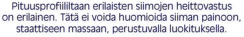 Poikkeuksellisen siimaprofiilin kohdalla on parempi, että valmistaja luokittelee siiman sen mukaan, mihin se kuuluu kuin sokeasti noudattaa painotaulukkoa.